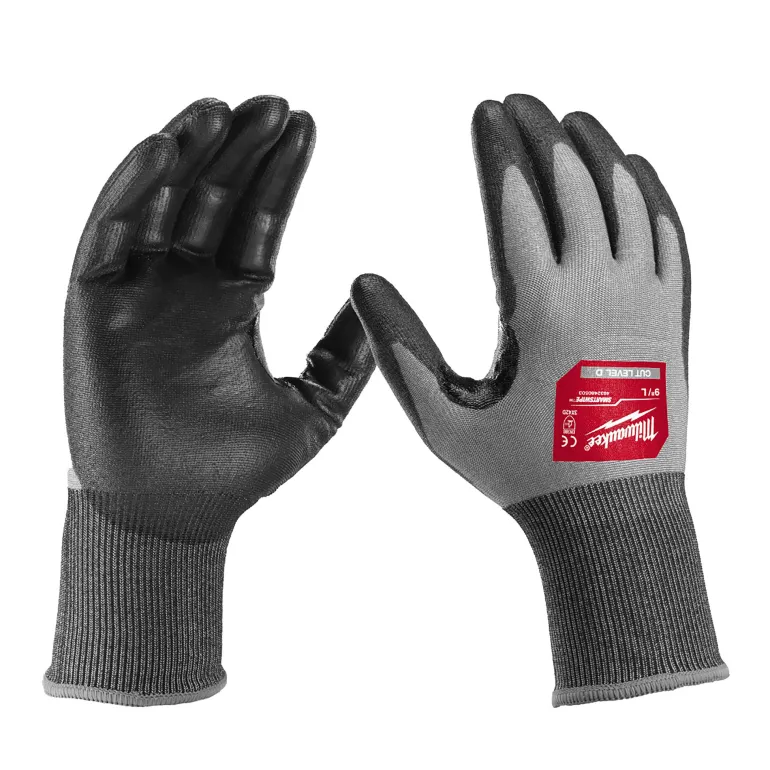 Milwaukeen Hi-Dex viiltosuojakäsine (Cut D), jonka 18 GG materiaali parantaa joustavuutta ja näppäryyttä erityistä tarkkuutta vaativiin tehtäviin.