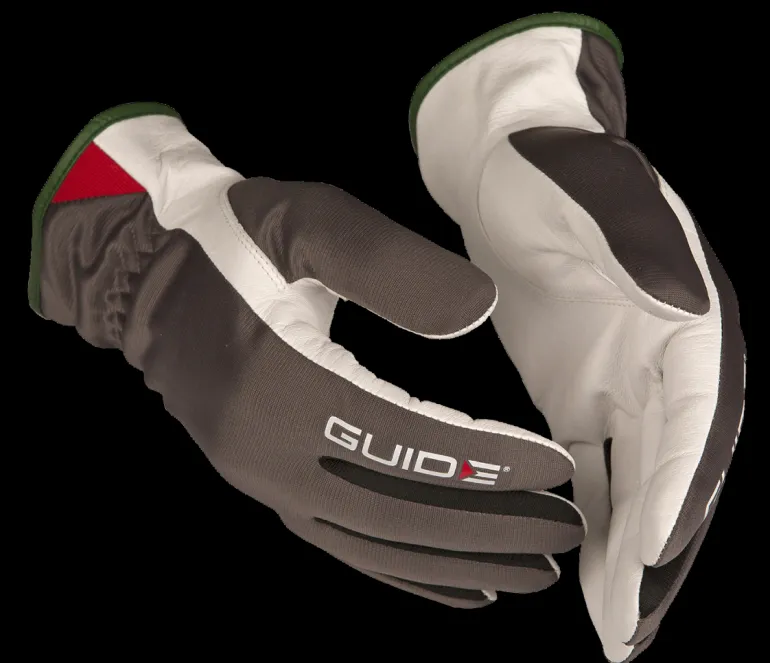Guide Gloves 341 on pehmeä ja mukava viiltosuojakäsine, jonka kämmen notkeaa, kulutusta kestävää vuohennahkaa ja kämmenselkä polyesteriä. Käsineessä on Kevlar®-täysvuori ja vahvikkeet sormenpäissä kämmenselän suojauksen parantamiseksi. Lyhyt avoranneke pukemisen ja riisumisen helpottamiseksi. Viiltosuojaustaso B.