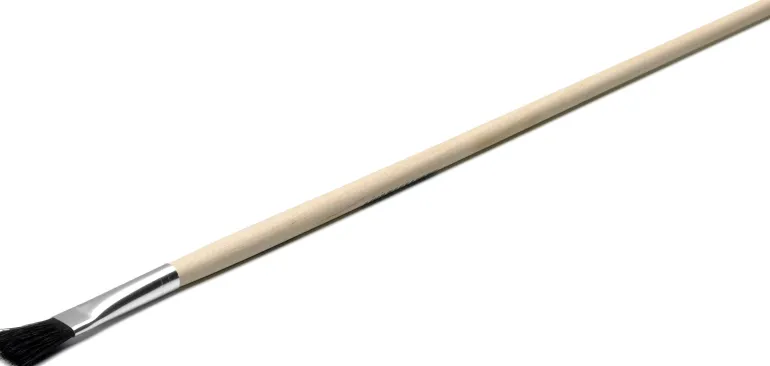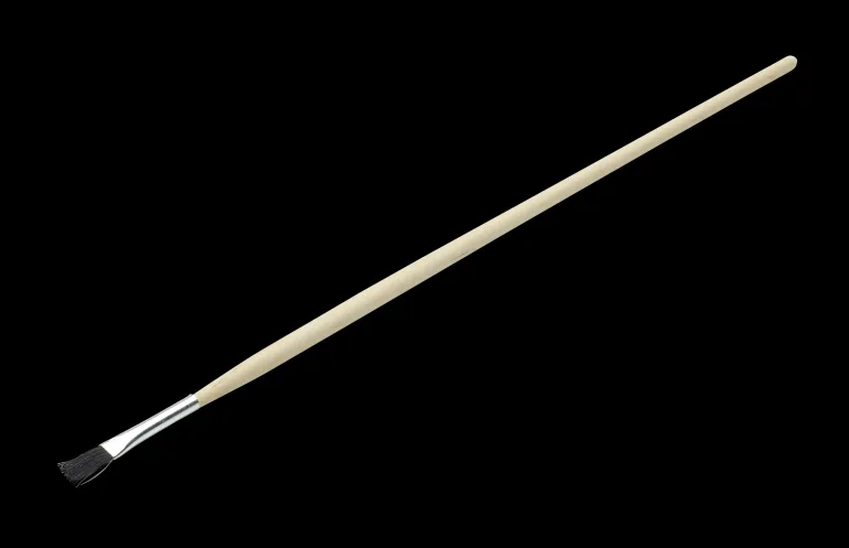 Viivasivellin mustilla luonnonharjaksilla (litteä) ja vaalealla puuvarrella.
