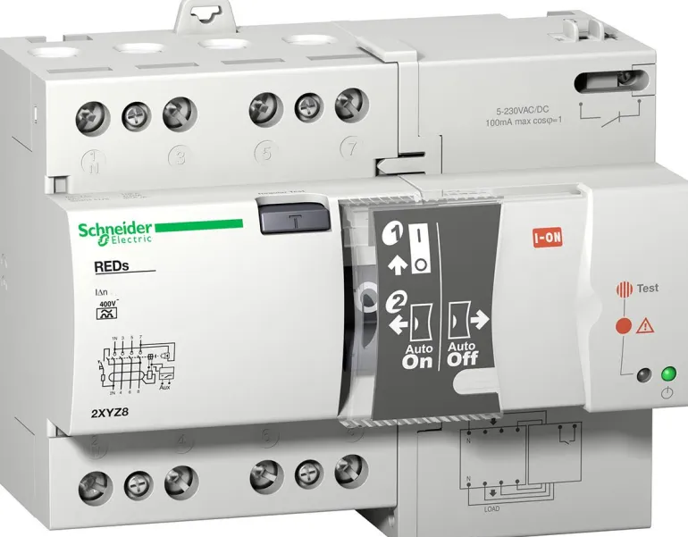 Schneider Electric REDs on 40 A:n vikavirtasuoja, jonka nimellinen vikavirta on 30 mA ja joka nollautuu itsestään. Vikavirtasuoja tarkistaa laukeamisen jälkeen, jatkuuko vika vai oliko se luonteeltaan tilapäinen. Jos vika on väliaikainen ja se on korjautunut, virta kytkeytyy uudelleen. REDs nollautuu automaattisesti ajoittaisten vikojen ilmetessä ja on varustettu kaukonäyttötoiminnolla.