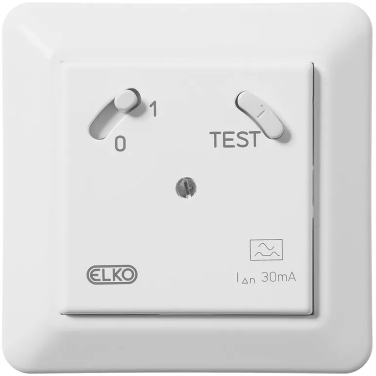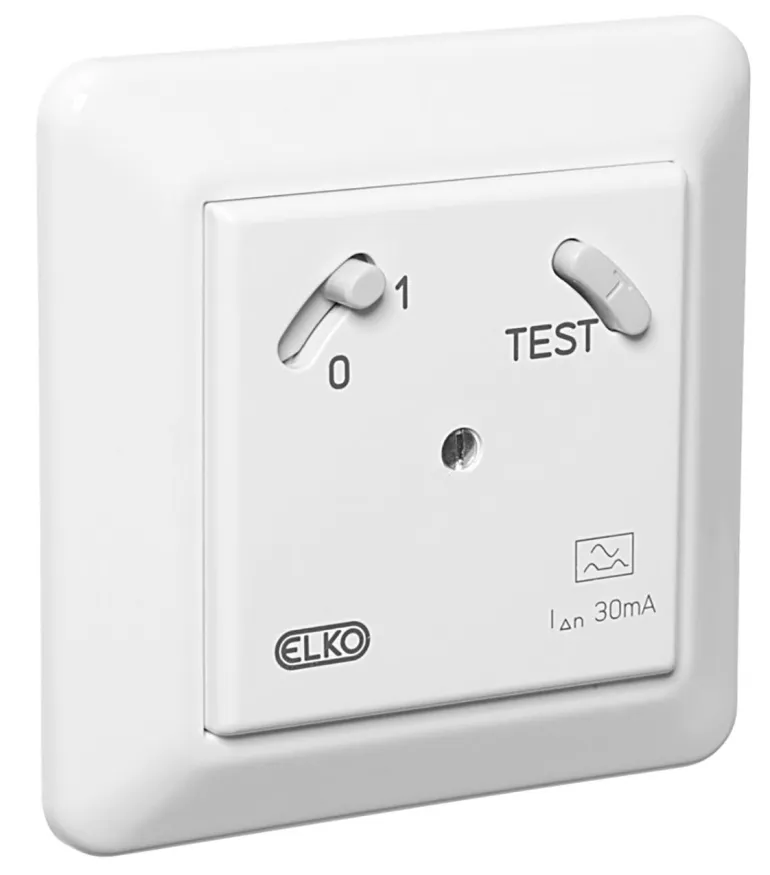 Vikavirtasuojakytkin uppoasennettava RS-sarjan muotoilulla. Kehys ja keskiölevy halogeenittomasta kestomuovista.