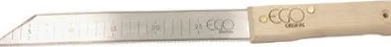 Mineraalivillapuukossa on leveä ja taipuisa terä. Karkaistu leikkuureuna. Puukädensija, etsattu mitta-asteikko (cm) terässä. Terän pituus 300 mm.