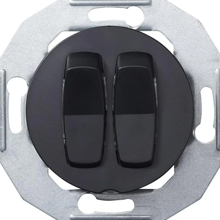 2-napainen vipukytkin kahdella vipupainikkeella ja pikaliitännällä. Upotettavaan IP20-asennukseen kojerasiaan c/c 60 mm. Toimitetaan kynsillä ja täydennetään halutulla Renova-kehyksellä.