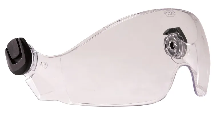 Petzl Vertex- ja Petzl Strato -kypäriin sopiva, silmiä suojaava visiiri on helppo asentaa Easy-clip-järjestelmän ansiosta
