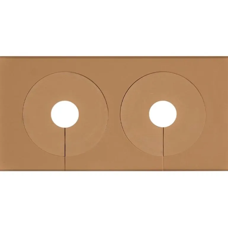 Ruskea jaettava vulk-peitelevy putkille 12–22 mm Dy. Mitat 98 x 48 mm ja siinä on kaksinkertainen rakenne kahdelle putkelle.