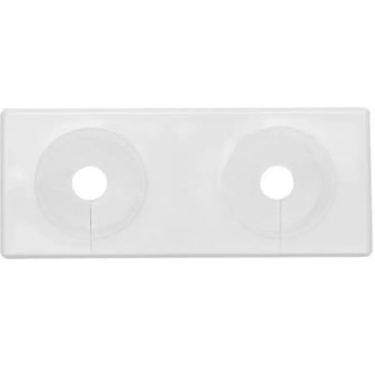 Valkoinen jaettava vulk-peitelevy, jossa on kaksinkertainen malli kahdelle putkelle. Levyn mitat ovat 118 x 48 mm ja se sopii putkiin, joiden koko on 12–22 mm.