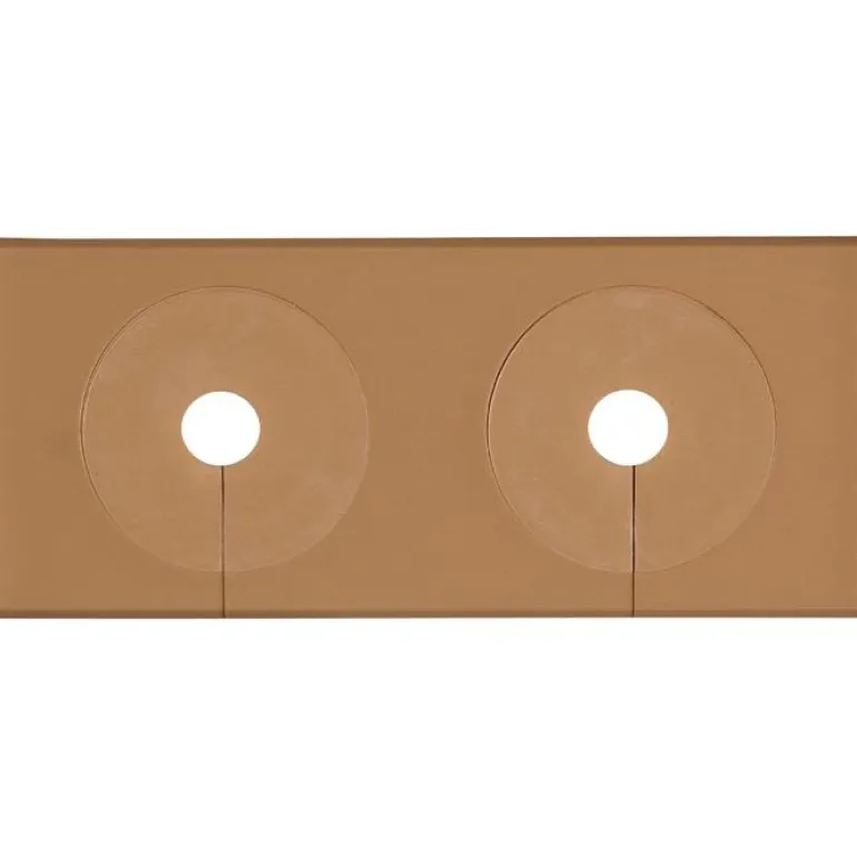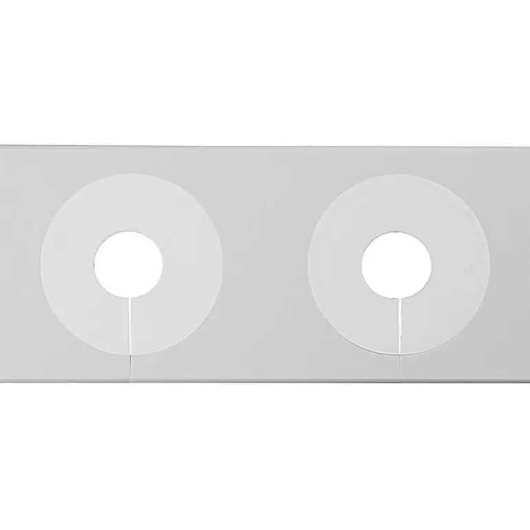 Valkoinen jaettava vulk-peitelevy, jossa on kaksinkertainen malli kahdelle putkelle. Mitat ovat 88 x 38 mm (P x S) ja se sopii putkiin, joiden koko on 12–16 mm.