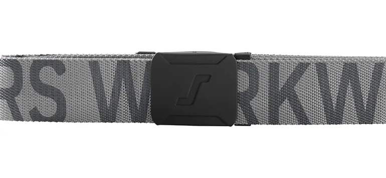 Kestävässä vyössä on kumipinnoitettu metallisolki, jonka mattapintainen viimeistely on miellyttävä ja tyylikäs. Napakka kudos lisää kestävyyttä, Snickers Workwear -painatus.