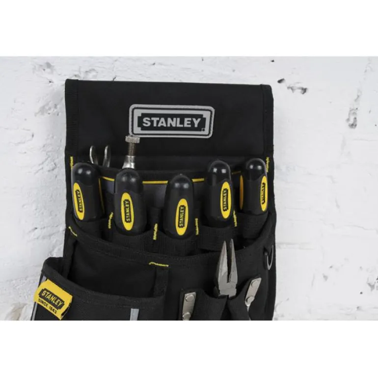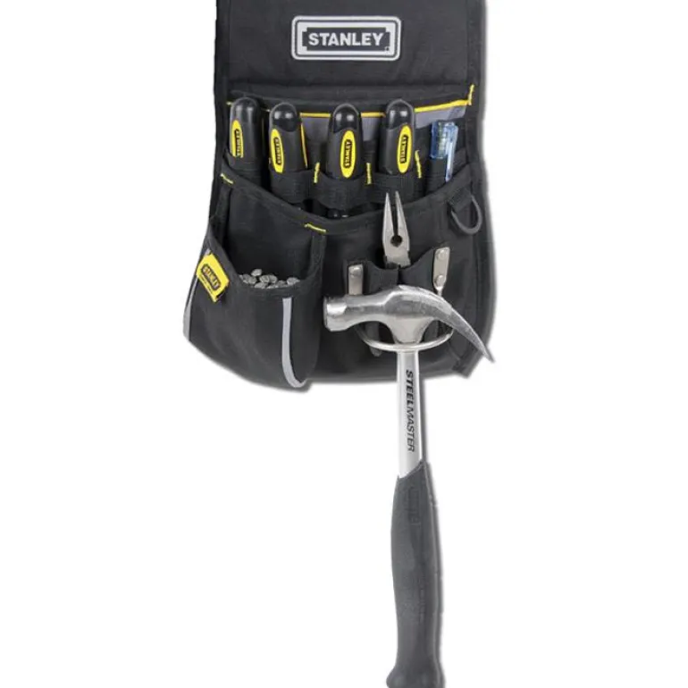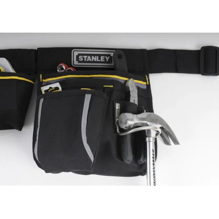 600 x 600 denierin kankaasta valmistettu vyölaukku – kestävä ja tukeva. Pidä työkalut lähellä työn aikana. Ergonominen pehmuste selässä parantaa turvallisuutta ja mukavuutta. Kiinteä metallisilmukka vasaralle. Erikokoisia taskuja ja silmukoita parantamaan järjestystä. Taskujen koko ja rakenne tekevät niistä erittäin helppokäyttöiset.