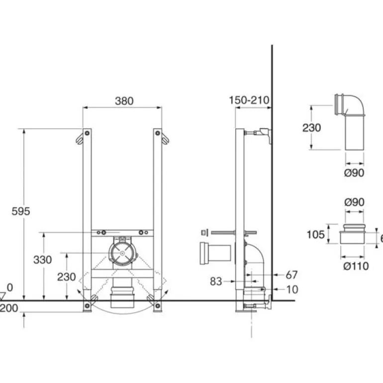 - Sisältää liitäntätiedot lattia- ja seinäviemäreihin