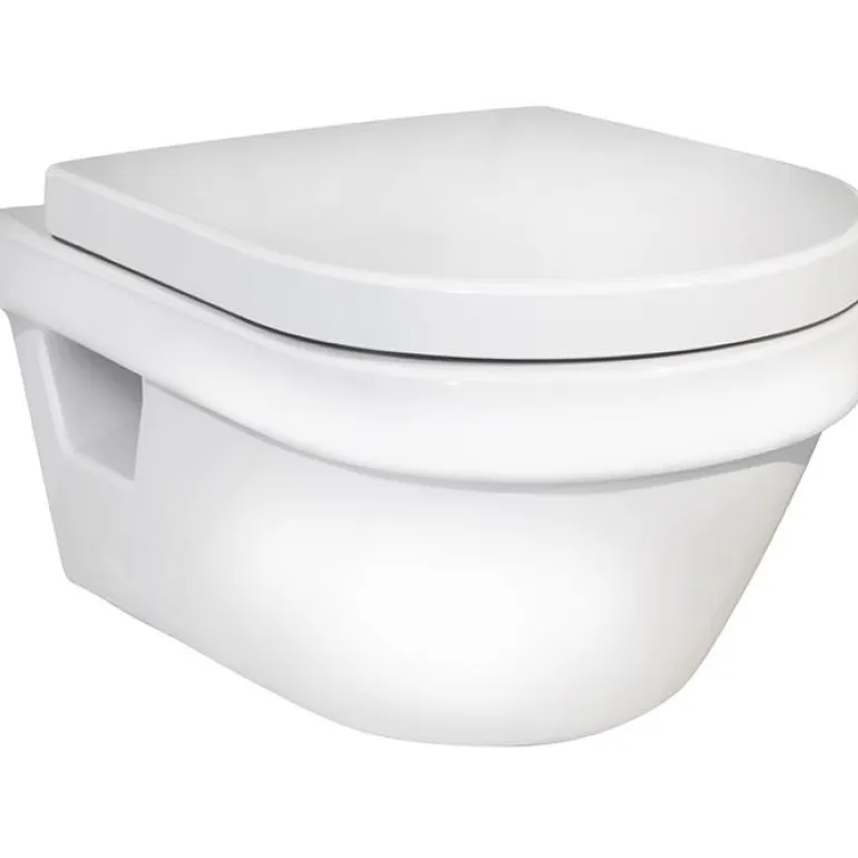 Seinään kiinnitettävä wc-istuin kovalla kannella, Soft Close/Quick Release -toiminnoilla ja kaksi-/yksitoimisella huuhtelulla. Huuhtelee reunaan asti. Mitat 530 x 370 x 330 mm ja seinäpulttien c/c-etäisyys 180 mm.