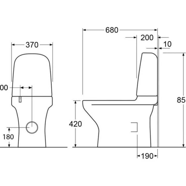 Valkoinen wc-istuin pehmeästi sulkeutuvalla kannella ja Ceramic Plus -pinnoitteella. Säädettävä huuhtelumäärä jopa 6 l. Tehdasasetuksena kaksitoiminen huuhtelu 4/2 l. Wc-istuin on lattiamallia ja sen mitat ovat 855 x 370 x 680 mm (K x L x S), istumakorkeus: 420 mm.