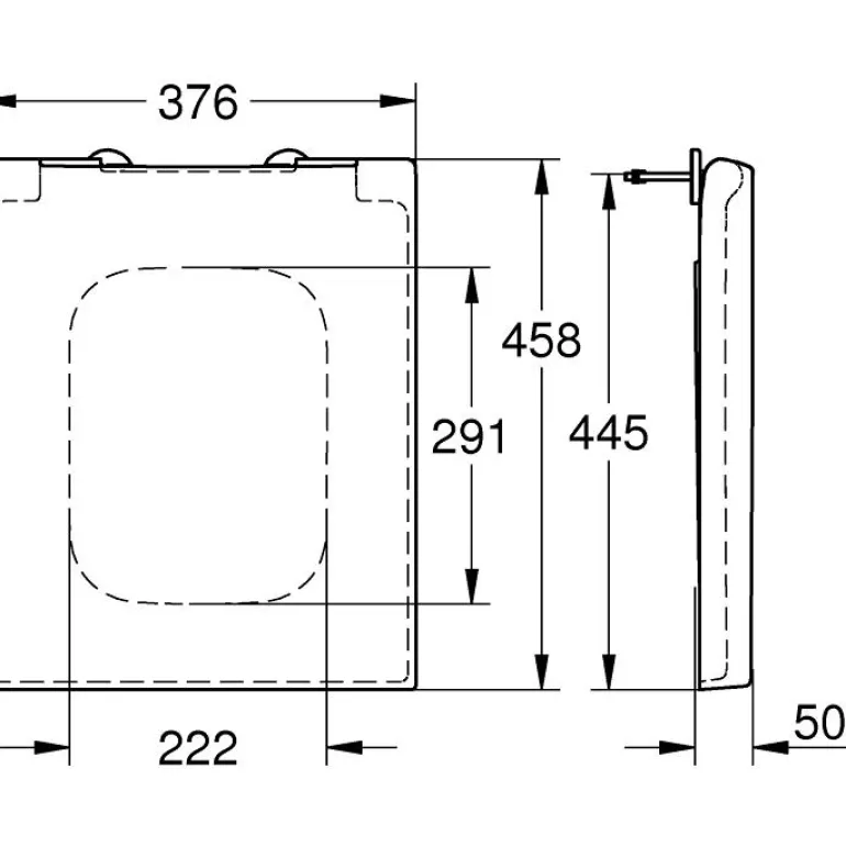 Cube Ceramic -WC-istuinkansi soft close -toiminnolla. WC-istuinkansi on valmistettu Duroplastista, se on irrotettava ja siinä on pehmeästi sulkeutuva soft close -toiminto ja pikakiinnitys.