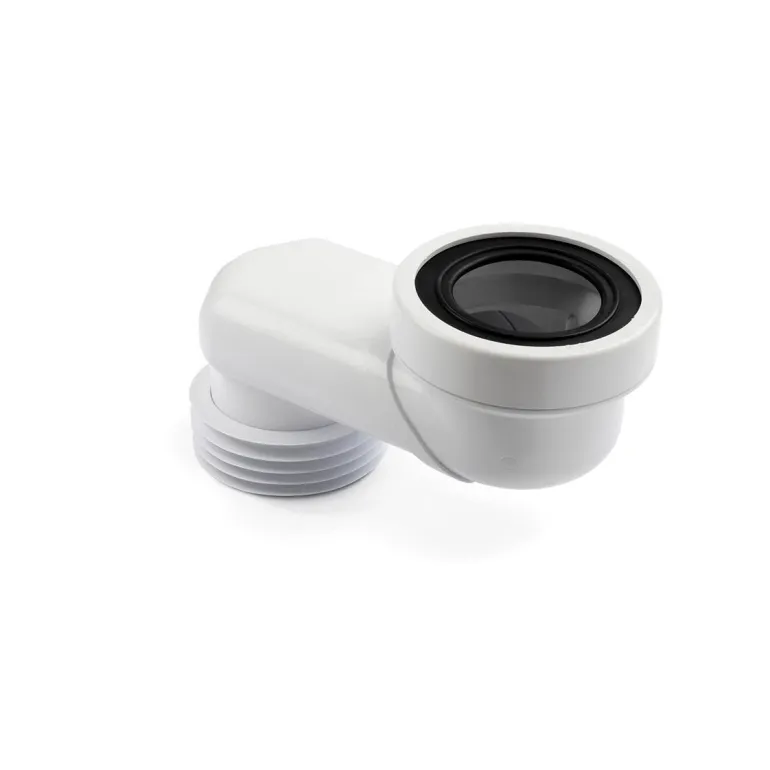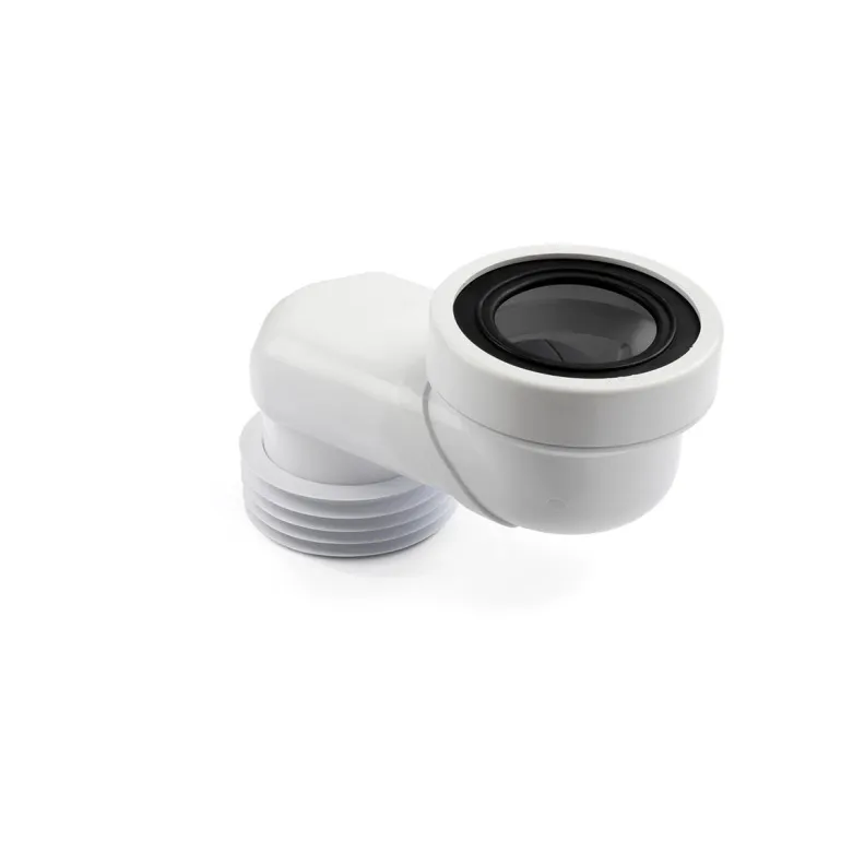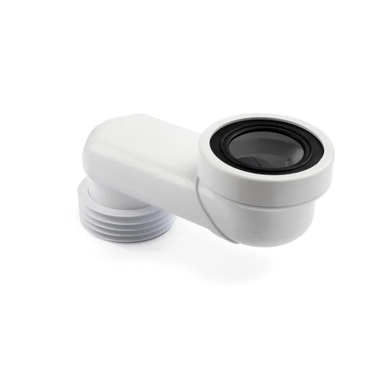 Epäkeskinen wc-jatkoputki wc-istuimeen liittämistä varten. WC-jatkoputki epäkeskisellä sivu-ulkonemalla wc-istuimen asennon säätämiseen ja asennuksen.