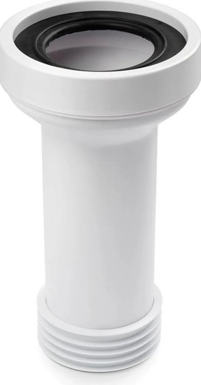 Keskinen ja suora WC-liitin. Liittimen mitat ovat 90 mm ja se on lyhennettävissä.