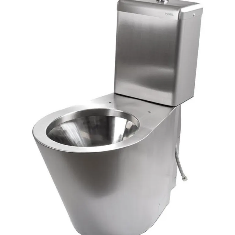 Ruostumattomasta teräksestä valmistettu lattialla seisova WC-istuin. Ruostumaton teräs tekee WC:stä sopivan käytettäväksi julkisissa ympäristöissä, joissa hygienia- ja kestävyysvaatimukset ovat kovat, kuten urheiluhalleissa, ravintoloissa ja muissa vastaavissa. Ilman istuinkantta ja kantta.