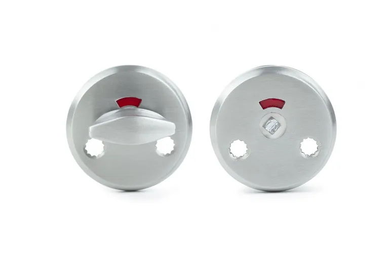 WC:n vääntönuppi alumiinia. Mukana ruuvit läpikiinnitykseen. Mukana 2 katkouraruuvia M5 x 65 mm ja 2 hylsymutteria M5. 38-42 mm vahvuisiin oviin. Yhteensopivat tuotteet: Lukkorungot 6414, 62014 ja 62020.