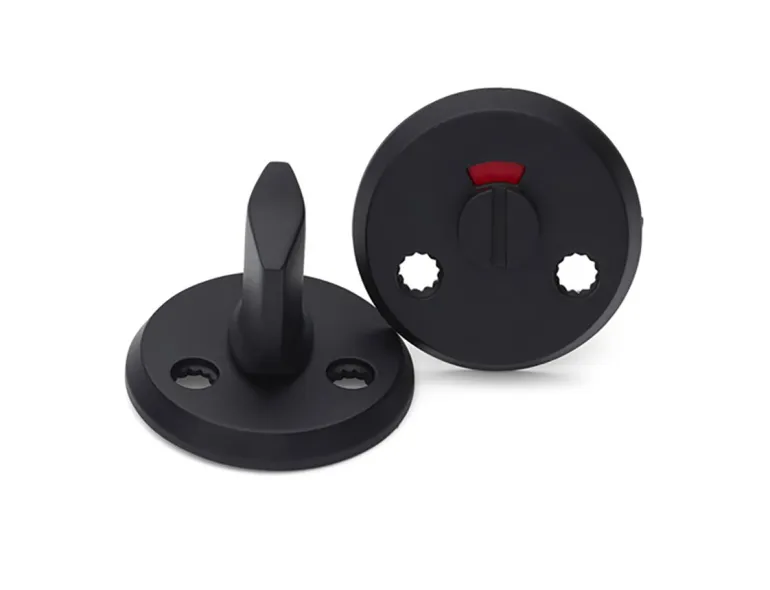 Messinkinen WC:n vääntönuppi (WC-vääntönuppi A262 musta). Mukana ruuvit läpikiinnitykseen. Mukana 2 katkouraruuvia M5 x 65 mm ja 2 hylsymutteria M5 sekä 4 puuruuvia 4 x 12 mm. 38-42 mm vahvuisiin oviin. Yhteensopivat tuotteet: Lukkorungot 6414, 62014 ja 62020.