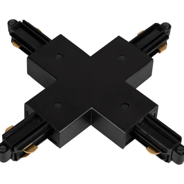 Musta X-liitäntä. Liitäntä on osa monipuolista kiskojärjestelmää Focus- ja Comfort-sarjan yksivaiheisille Hide-a-lite-tuotteille, joissa kukin osa myydään erikseen tarpeisiisi sopivana sekä kotiin että julkisiin tiloihin.