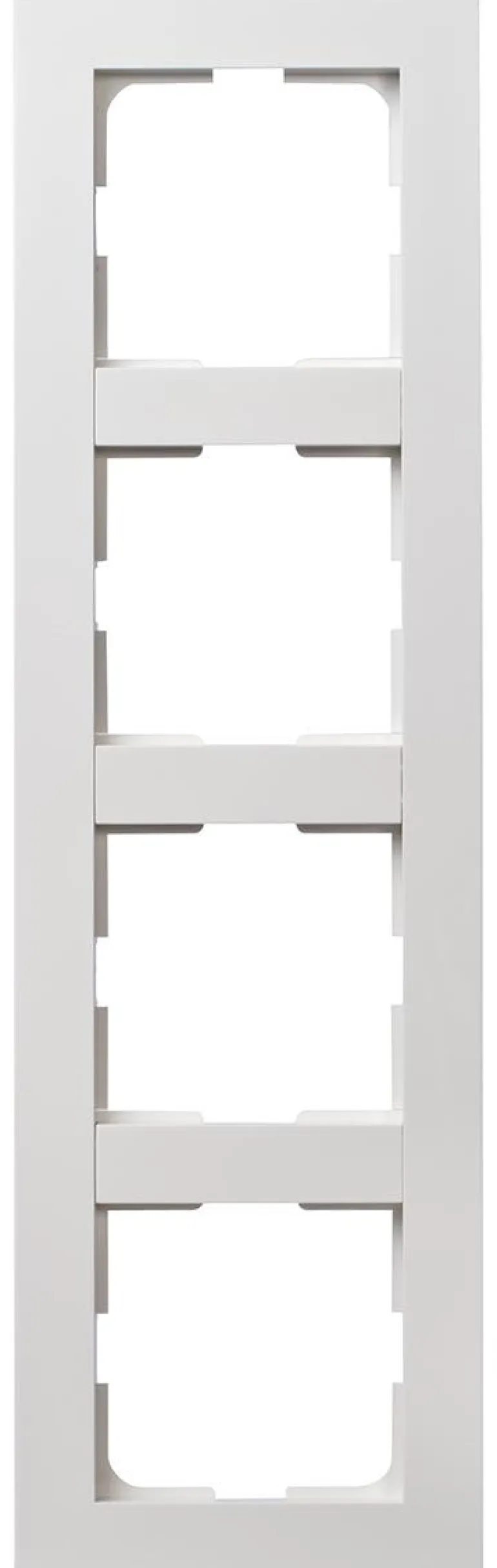 Yhdistelmäkehys upotettaville kytkimille, pistorasioille jne. Aukkojen välissä olevat rimat ovat irrotettavissa, mikä mahdollistaa mm. 3-osaisten pistorasioiden asentamisen kahteen reikään.