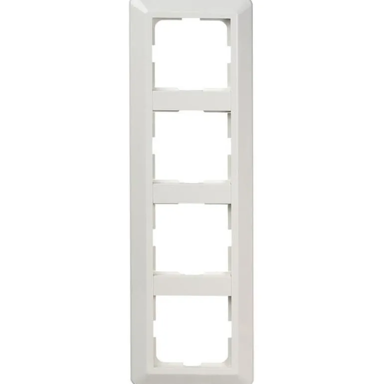 Yhdistelmäkehys, jossa on 4 lokero upotettaville kytkimille, pistorasioille jne. Malli voidaan asentaa sekä vaaka- että pystysuunnassa, sen mitat ovat 84 x 10,5 x 297 mm ja se on valmistettu valkoisesta lämpämuovista.