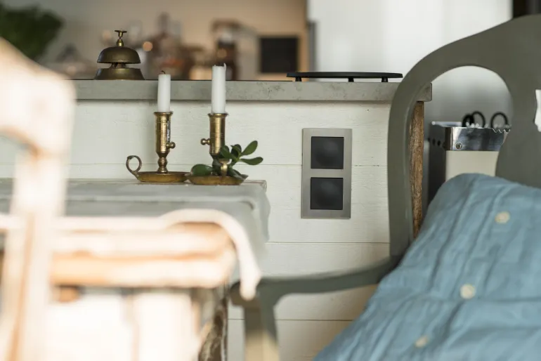 Eksklusiiviset teräs-, liuskekivi- ja lasikehykset, jotka voidaan asentaa kaikkiin Elko Plus -laitteisiin paitsi kaksiosaisiin seinäpistorasioihin.