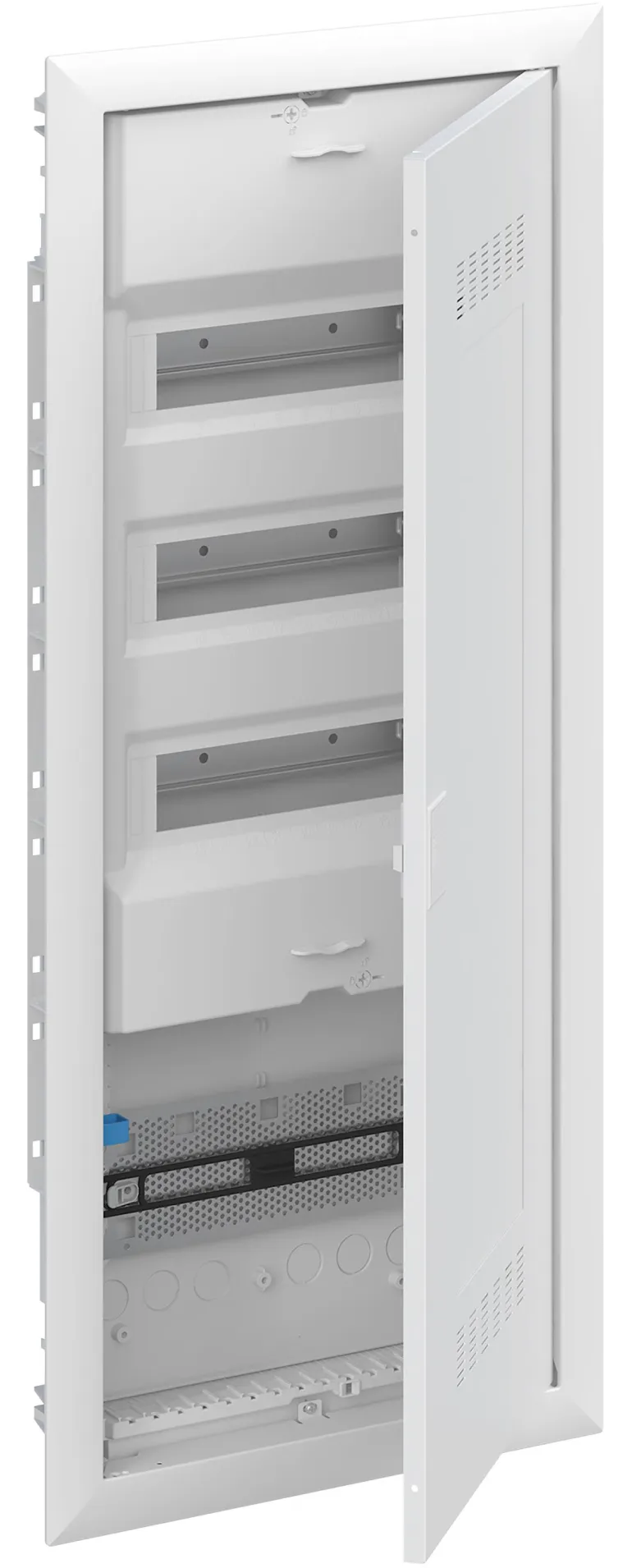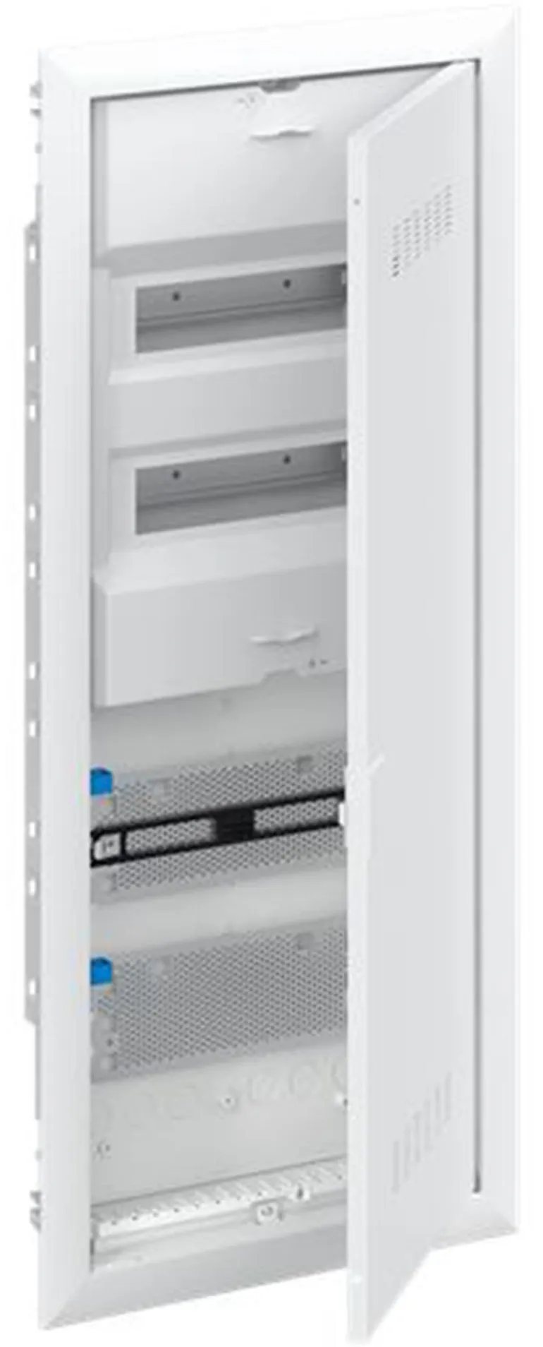 Yhdistelmäkeskus uppoasennukseen, sarjaan ABB UK600, ovikehys ja ilmastoitu ovi. Kotelointiluokka II (kaksoiseristetty), IP30.