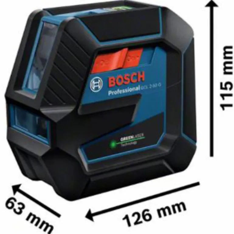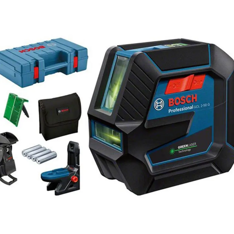 Bosch GCL 2-50 / RM10 on yhdistelmälaser vihreillä laserlinjoilla. Laser on kestävä, ja siinä on kumipäällysteinen kotelo, jossa on sisäänrakennettu lasi- ja pöly- ja roiskevesisuojaus luokassa IP 64, joten se kestää ankaria ympäristöjä.