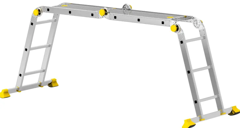 Useita käyttömahdollisuuksia yhdessä taitetussa ja kompaktissa rakenteessa. Tarjoaa kolmet tikkaat samassa paketissa, koska niitä voidaan käyttää sekä tasona että vapaasti seisovana tai nojatikkaina. Mukana työaluetta laajentava työtaso, jolla voi seisoa. Toimitus sisältää kaksi tikasjalustaa turvallisuuden parantamiseksi. Standardin EN131-4 mukaisella 350 kg:n testikuormalla testattu työtaso ja 10 000 käyttösyklillä testatut nivelosat takaavat lisäturvallisuuden.