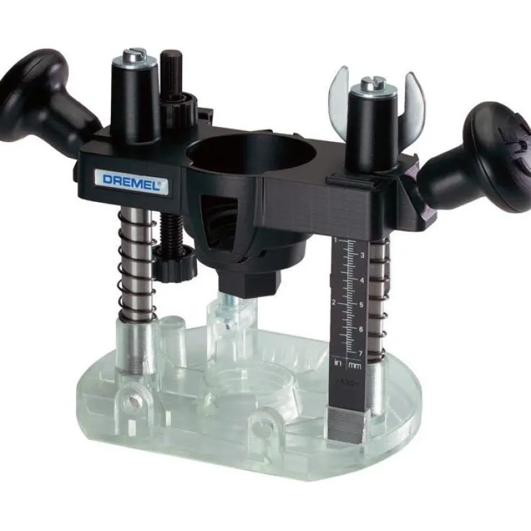 Työntöjyrsinlisälaite, joka teke Dremel-työkalustasi yläjyrsimen. Täydellinen ympyröiden, kylttien ja upotusten tekoon sekä koristereunusten ja reunan suuntaiseen jyrsintään.