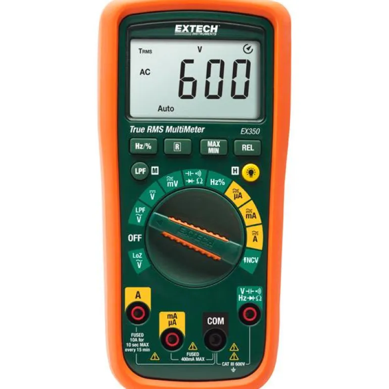 Extech EX350 on yleismittari, joka mittaa kapasitanssin, taajuuden, käyttösuhteen ja impedanssin. Helppolukuinen LCD-näyttö, jossa on 4000 kuvapistettä.