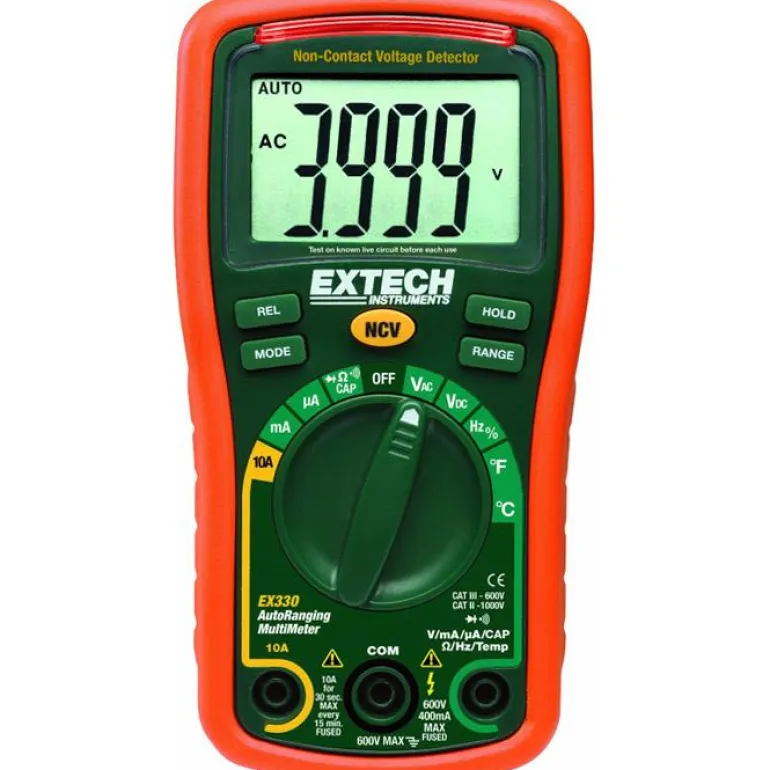 Extech EX330 yleismittari, jossa on kosketukseton jänniteilmaisin/jännitemittaus. Erinomainen sähkötöihin.