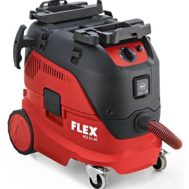 FLEX VCE33 LAC-Kit on pölyuokan L märkä- ja kuivaimuri, 30 L ja automaattinen suodattimen puhdistusjärjestelmä. 1400 W:n teho ja viivästetty sammutus 15 sekunnissa.