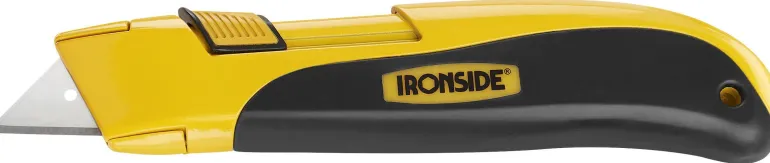 Turvaveitsi. Terä palautuu automaattisesti, kun painaminen työkappaletta vasten lopetetaan. Sinkkiä pehmeällä kumikädensijalla. Helppo teränvaihtotoiminto. Toimitukseen sisältyy 1 terä.