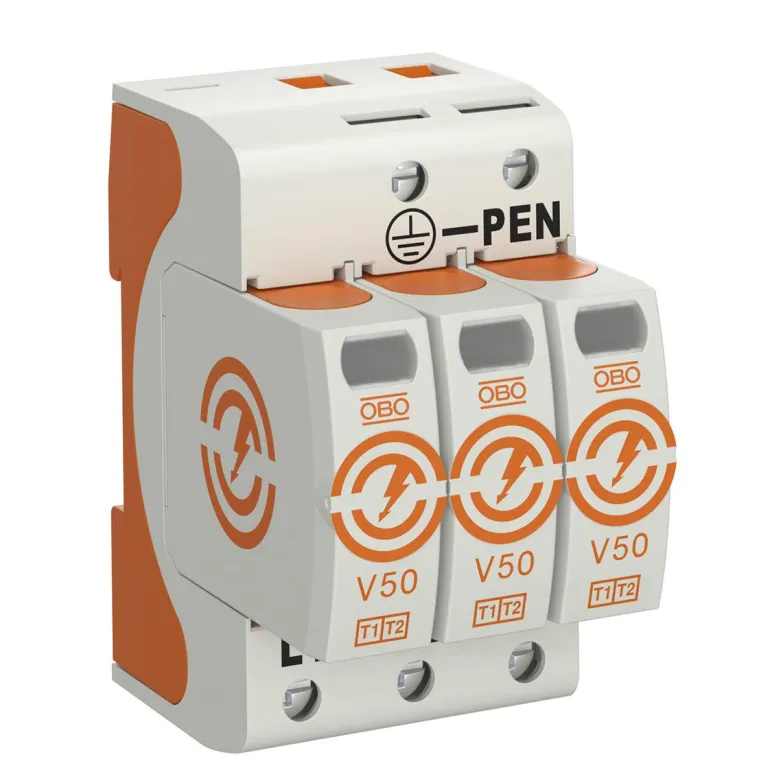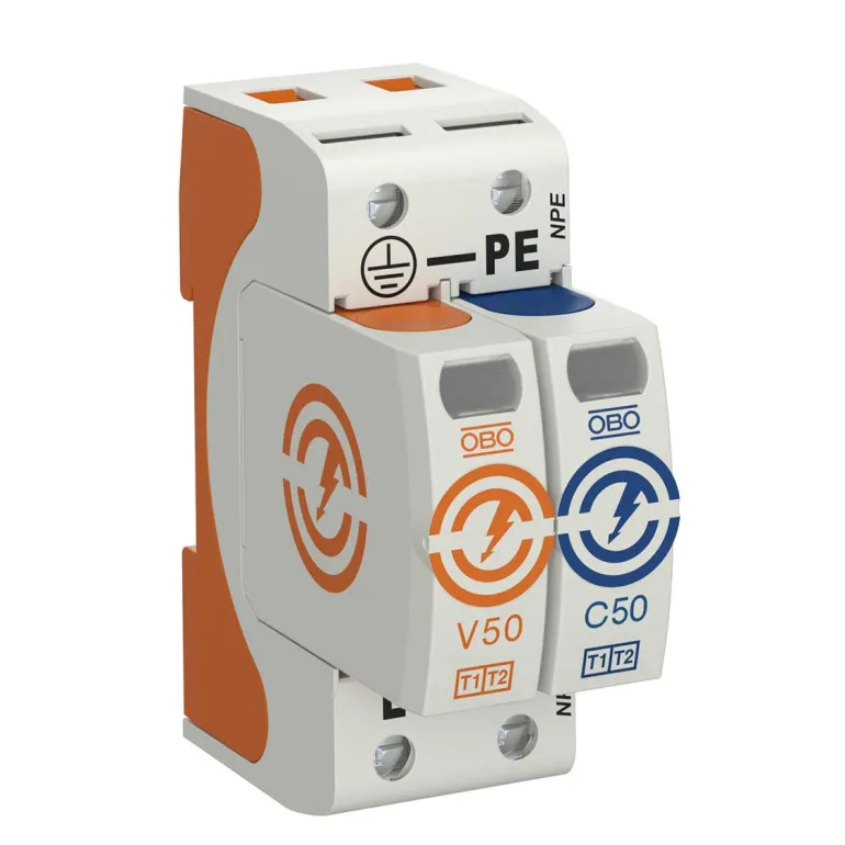Ylijännitesuoja Kombi V50 maaseutualueille ja asennuksiin, joissa on salamansuojaus SSEN 62305:n mukaisesti.