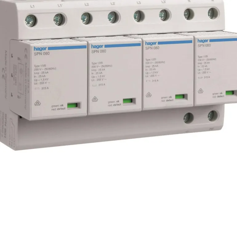 Yhdistetty ylijännitesuoja (karkea suoja/keskitason suoja) kahtena eri versiona, 4 johtimelle tai 5 johtimelle. Suoja käsittää 6 tai 8 moduulia, ja se voidaan varustaa hälytyskoskettimella. Suojaus on luokiteltu karkeaksi suojaukseksi, tyyppi 1/B standardin EC 60 664-1 mukaisesti.