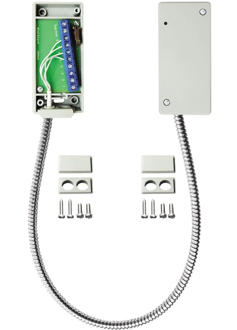 Metallikoteloitu DL 50 -ylivientisuoja parantaa turvallisuutta, helpottaa ylivientiä ikkunan tai oven ja karmin välillä ja suojaa kaapelia. Se koostuu 2 metallisesta kytkentärasiasta, joissa on aukaisusuoja, ja ruostumattomasta metalliletkusta.