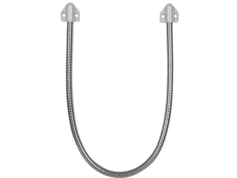 400 mm joustava metalliletku, jossa on kaksi kiinnityslevyä ja kaksi reunasuojaa valkoisesta muovista.